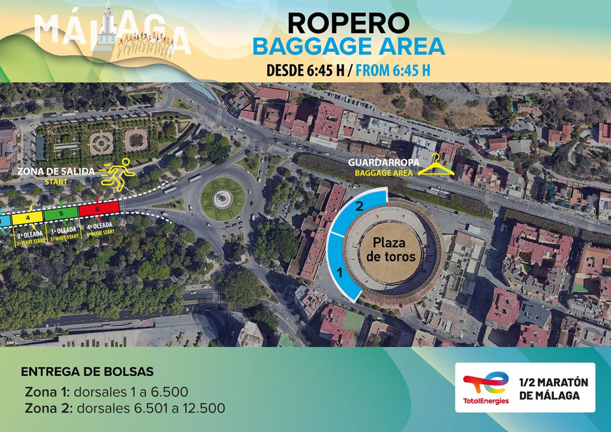 El guardarropa del TotalEnergies Medio Maratón de Málaga 2026 estará situado en el entorno de la Plaza de
